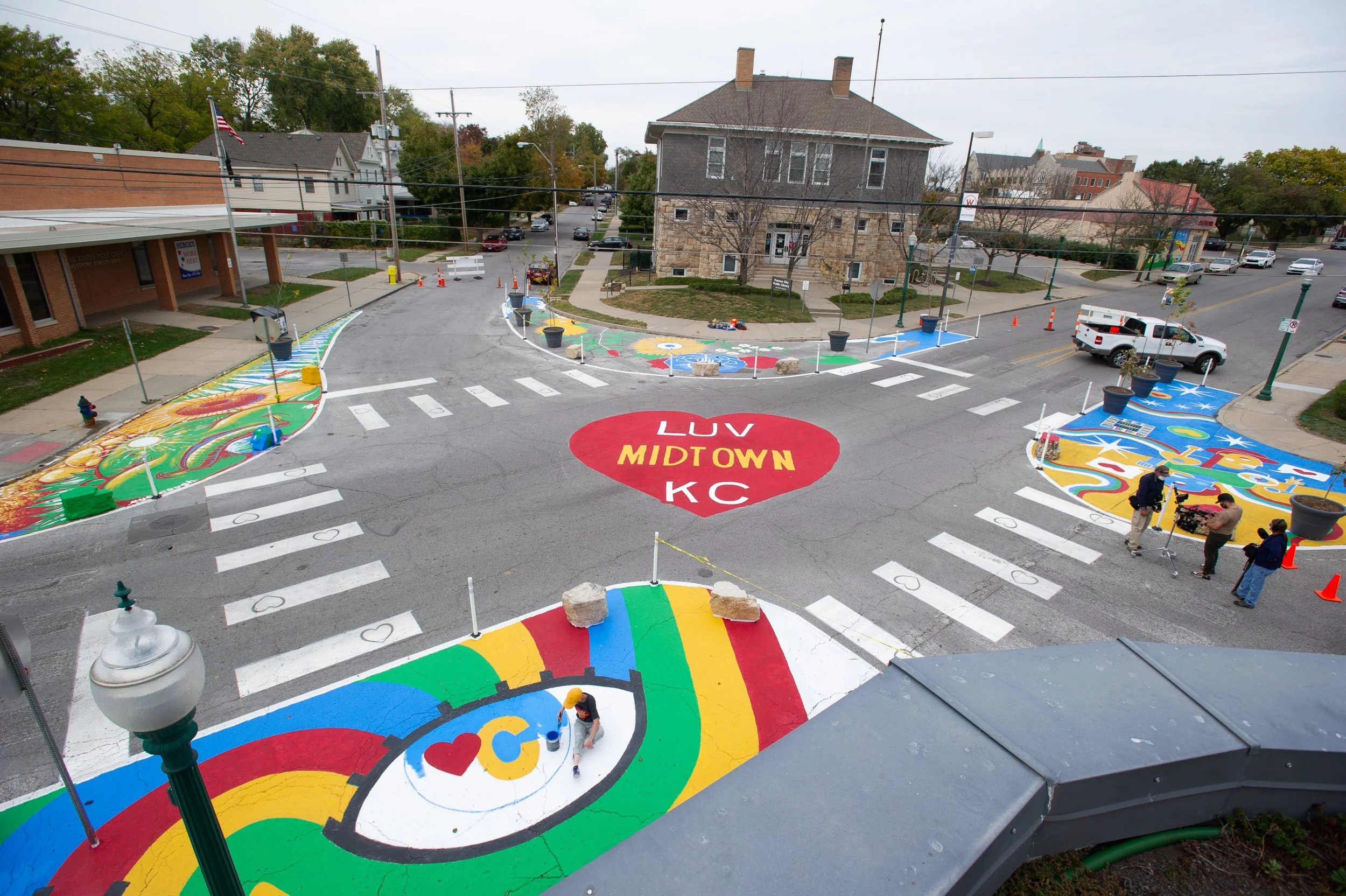 Midtown KC Now & Street Smarts Design Asphalt art mural